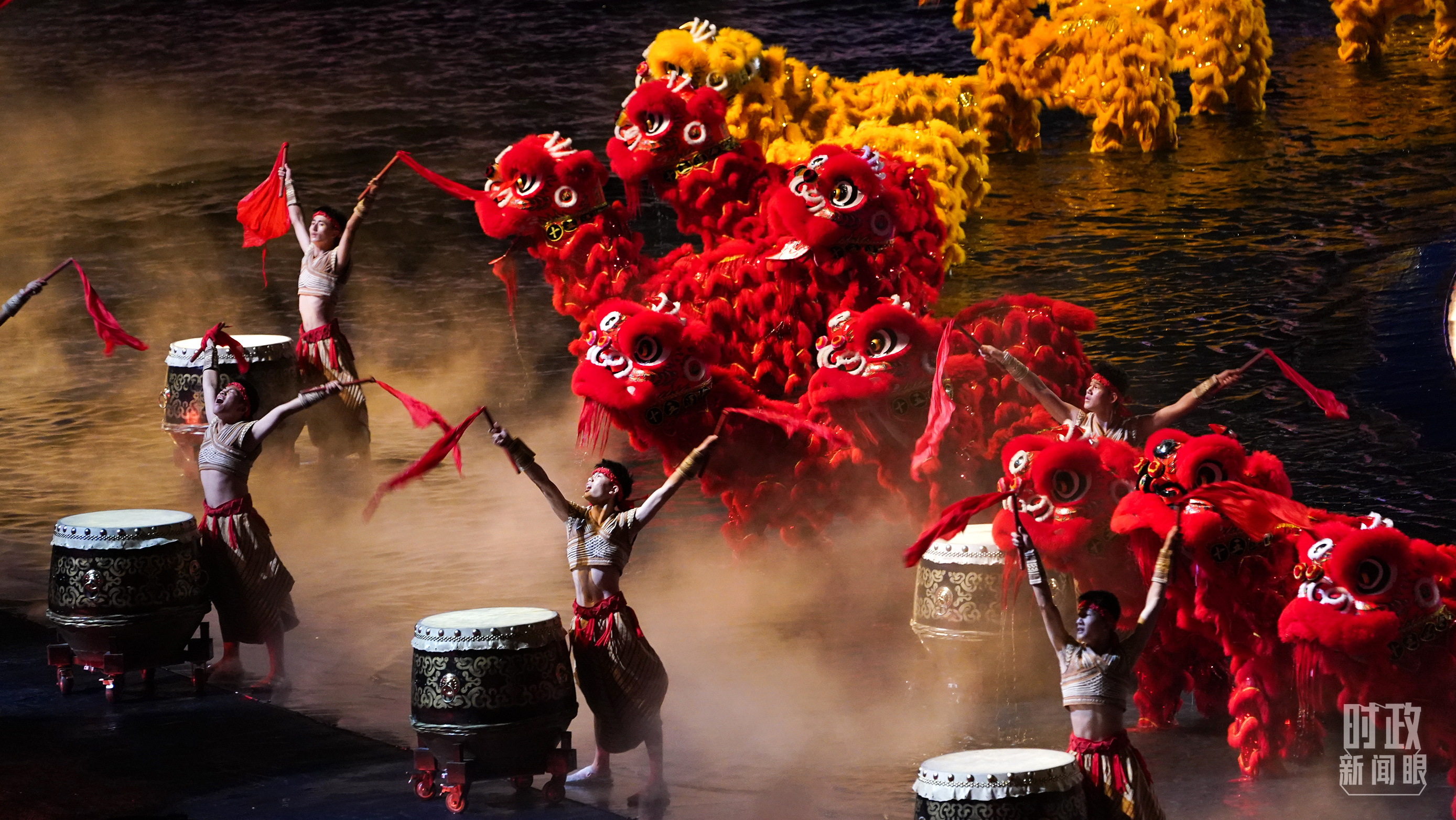 粵港澳大灣區(qū)作為全國科技重鎮(zhèn),傳統(tǒng)嶺南文化與前沿科技深度融合成為本屆全運會開幕式的一大亮點。醒獅表演與人工智能技術相互交融,英歌鑼鼓搭配全息投影,龍舟競渡場景通過AR技術“劃”入觀眾席,一場“古今對話”的沉浸式藝術盛宴“燃動”全場?;泟?、詠春、麒麟、廣繡、嵌瓷等璀璨的嶺南文化符號巧妙融入,賦予開幕式獨特的嶺南神韻。