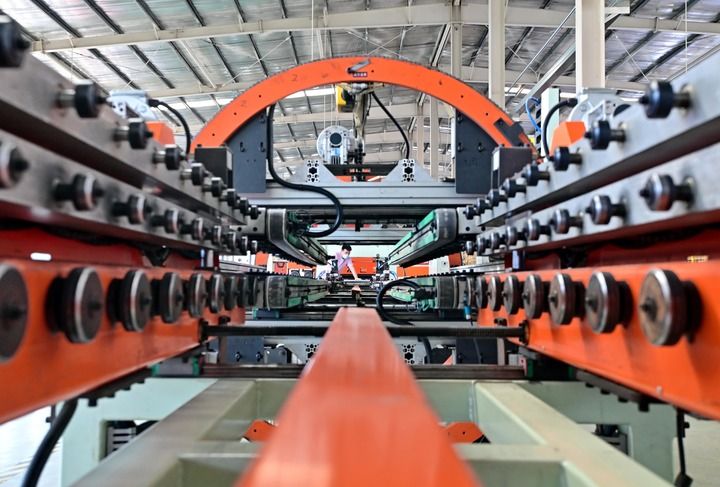 2025年6月18日,河北省唐山市蘆臺經(jīng)濟開發(fā)區(qū)一家采暖設(shè)備企業(yè)的工人在生產(chǎn)線上工作。新華社記者 楊世堯 攝