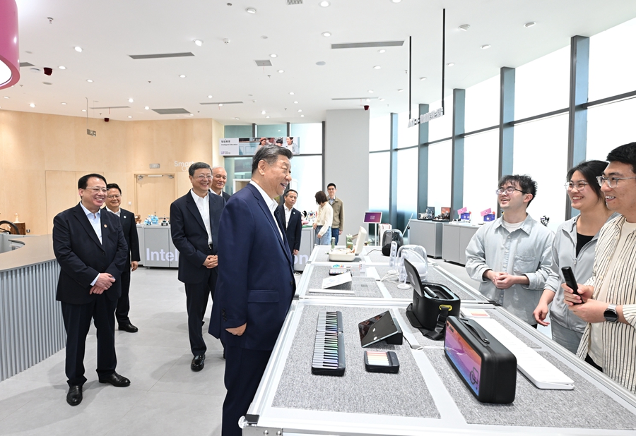 2025年4月29日,習(xí)近平總書(shū)記在位于上海徐匯區(qū)的“模速空間”大模型創(chuàng)新生態(tài)社區(qū)人工智能產(chǎn)品體驗(yàn)店考察。