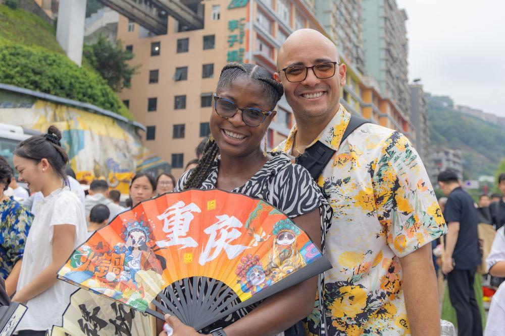 2025年10月,重慶渝中,加拿大游客在李子壩游玩。
