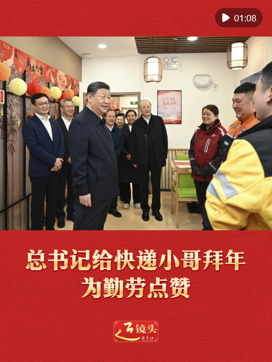10日上午,習(xí)近平總書記在北京考察調(diào)研,走進(jìn)西城區(qū)新街口街道父母食堂,見到在這里休息的快遞小哥,關(guān)切詢問他們的工作和生活,為他們付出的辛勞和作出的貢獻(xiàn)點(diǎn)贊,并給他們拜年。
