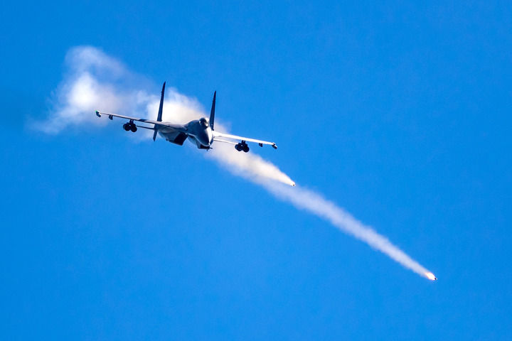 空軍航空兵某旅“強(qiáng)軍先鋒飛行大隊(duì)”飛行員駕駛戰(zhàn)機(jī)進(jìn)行對(duì)地打靶訓(xùn)練(2018年9月7日攝)。