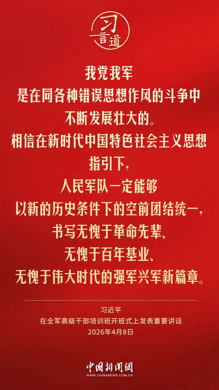 全軍高級干部培訓班8日在國防大學開班。中共中央總書記、國家主席、中央軍委主席習近平出席開班式并發(fā)表重要講話。他強調——