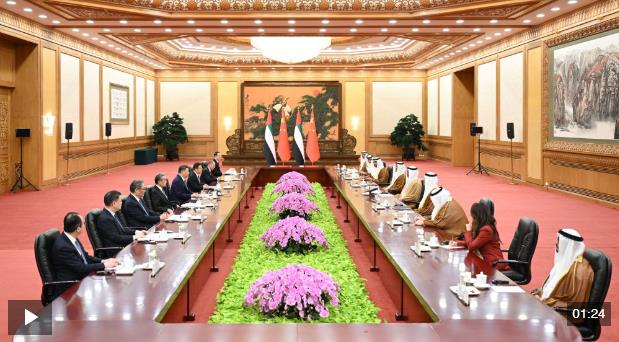 習(xí)近平指出,阿聯(lián)酋是中國(guó)的全面戰(zhàn)略伙伴,中方始終高度重視發(fā)展中阿關(guān)系。當(dāng)前,世界之變、時(shí)代之變、歷史之變正以前所未有的方式展開,人類社會(huì)面臨和平還是戰(zhàn)爭(zhēng)、團(tuán)結(jié)還是對(duì)抗、發(fā)展還是衰退的歷史抉擇。中國(guó)和阿聯(lián)酋作為全球南方重要成員,有必要加強(qiáng)協(xié)調(diào)、增進(jìn)合作,打造更加穩(wěn)固堅(jiān)韌、富有活力的中阿全面戰(zhàn)略伙伴關(guān)系。