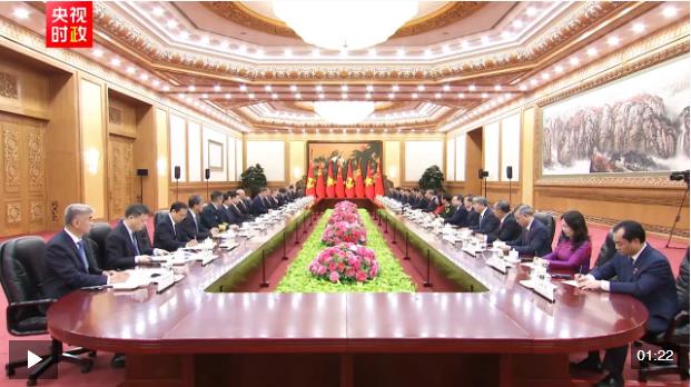 習(xí)近平指出,你當(dāng)選越南國家主席后第一時(shí)間到訪中國,體現(xiàn)了你對(duì)發(fā)展中越關(guān)系的高度重視。無論國際形勢如何變化,中方始終將越南作為周邊外交優(yōu)先方向,愿同越方秉持初心、賡續(xù)友誼,團(tuán)結(jié)協(xié)作、相互支持,高質(zhì)量推進(jìn)全面戰(zhàn)略合作,加快構(gòu)建更高水平具有戰(zhàn)略意義的中越命運(yùn)共同體。