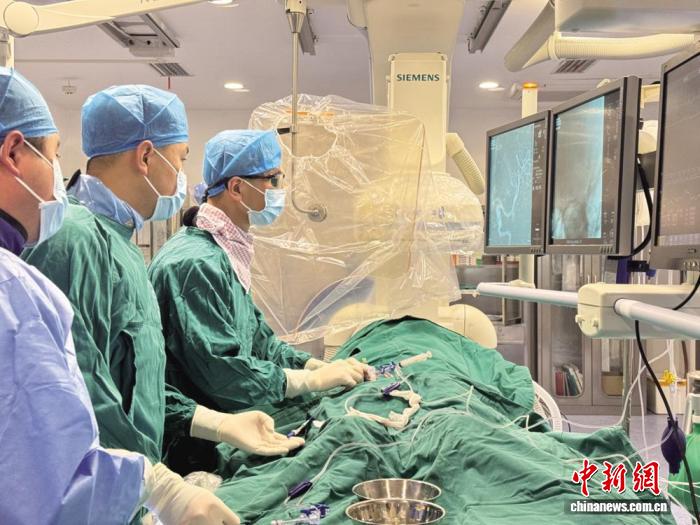 不久后,在海西州人民醫(yī)院介入導(dǎo)管室內(nèi),沈建帶領(lǐng)專(zhuān)家團(tuán)隊(duì)在DSA血管造影系統(tǒng)實(shí)時(shí)引導(dǎo)下,將手中的微導(dǎo)管從才仁瑪手腕處直徑僅2毫米的橈動(dòng)脈穿入,穿越復(fù)雜血管網(wǎng)絡(luò)精準(zhǔn)抵達(dá)病變部位。他們先將支架精準(zhǔn)釋放于動(dòng)脈瘤開(kāi)口處,再通過(guò)微導(dǎo)管將柔軟的彈簧圈逐步填入動(dòng)脈瘤腔內(nèi),最終實(shí)現(xiàn)完全栓塞。