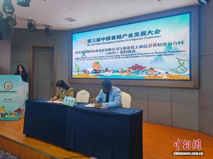 共建黃精產(chǎn)業(yè)出海新通道,大會(huì)期間特別舉行了新晃黃精國際貿(mào)易交流會(huì),邀請(qǐng)馬拉維、萊索托、尼日利亞、阿爾及利亞、印度尼西亞等七國及農(nóng)業(yè)、商貿(mào)領(lǐng)域代表,與新晃縣政企代表圍繞黃精產(chǎn)業(yè)國際化展開交流合作。其中,新晃黃精現(xiàn)代農(nóng)業(yè)發(fā)展有限公司與萊索托工商總會(huì)中國代表處簽訂《新晃黃精出口萊索托合作框架協(xié)議》。