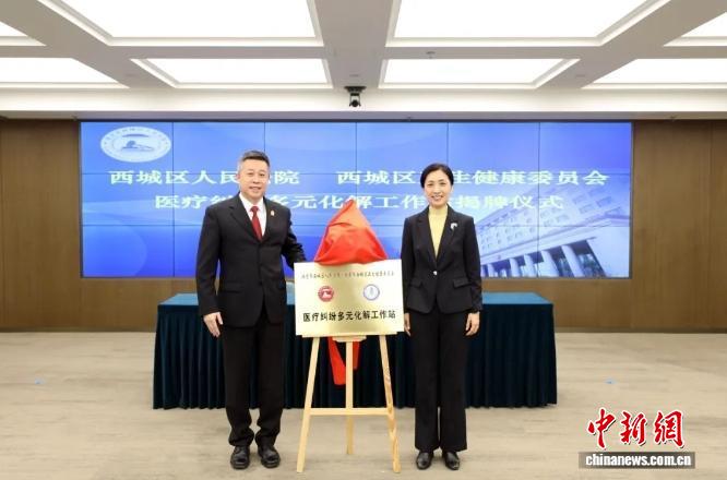 圖為“醫(yī)療糾紛多元化解工作站”揭牌。北京市西城區(qū)法院供圖
