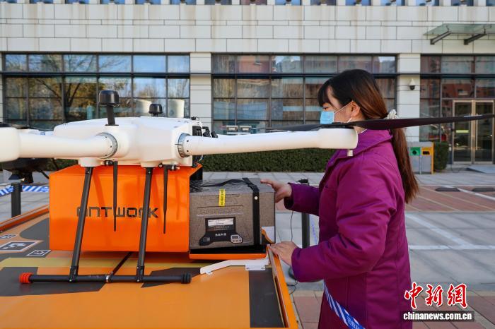12月1日,天津市首條常態(tài)化無(wú)人機(jī)運(yùn)輸血液制品航線正式啟用。(中新天津生態(tài)城供圖)