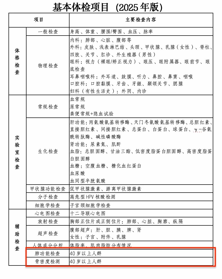很多人每年體檢都在糾結(jié):體檢項(xiàng)目一大堆,到底該查什么?隨著年齡增加,器官也在衰老,查多了怕浪費(fèi)錢,查少了又怕漏掉重點(diǎn)……國(guó)家衛(wèi)健委今年10月底發(fā)布了《成人健康體檢項(xiàng)目推薦指引(2025年版)》,明確推薦了40歲以上必做的兩項(xiàng)檢查。