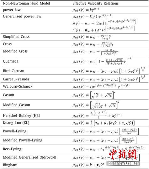 血流動力學(xué)中主流的非牛頓流體模型。西北工業(yè)大學(xué)供圖