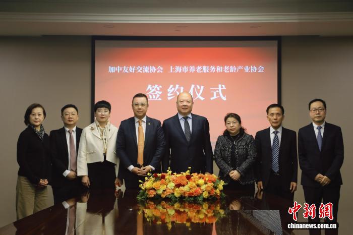 上海市養(yǎng)老服務(wù)和老齡產(chǎn)業(yè)協(xié)會與加中友好交流協(xié)會簽署戰(zhàn)略合作協(xié)議。(加中友好交流協(xié)會供圖)