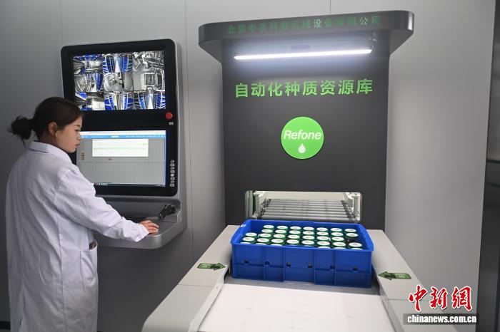 3月26日,在位于甘肅省定西市隴西縣的國(guó)家藥用植物種質(zhì)資源庫甘肅庫智能庫內(nèi),工作人員通過智能管控系統(tǒng)存取種子。中新社記者 李亞龍 攝