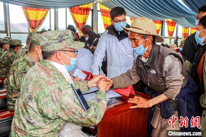 “多年的疾病,今天終于接受了一次系統(tǒng)的檢查和治療,感謝‘金珠瑪米門巴’(解放軍醫(yī)生)?!贝迕裎骼@為外科醫(yī)生王勝獻上潔白的哈達,表達她的感恩之心,并緊握醫(yī)生的手久久不愿放開。