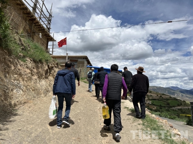 圖為義診團(tuán)專(zhuān)家代表進(jìn)村入戶(hù)慰問(wèn)困難群眾 攝影:德吉卓瑪