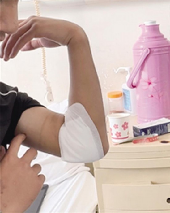 經(jīng)過多位專家的多學(xué)科聯(lián)合會診,同患者及家屬充分溝通后,簽署了知情同意書(微創(chuàng)肘關(guān)節(jié)鏡手術(shù)),醫(yī)院進行了手術(shù),并請康復(fù)科醫(yī)生會診協(xié)助患者進行術(shù)后肘關(guān)節(jié)功能鍛煉。術(shù)后第一天,患者就開始肘關(guān)節(jié)屈伸鍛煉。術(shù)后第三天,患者肘關(guān)節(jié)活動度可達100度、伸直可達0度,較術(shù)前功能明顯改善,左手可以輕松完成梳頭、吃飯等日常動作,傷口愈合良好,無紅腫、無滲出,目前已經(jīng)出院。