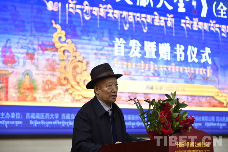 西藏藏醫(yī)藥大學(xué)米瑪校長代表主辦方在致辭中表示,《大全》是集藏醫(yī)藥學(xué)界之力的一項(xiàng)重大成果,以西藏藏醫(yī)藥大學(xué)為例,作為藏醫(yī)藥研究的重要力量,在《大全》編纂整理過程中,先后派駐多名業(yè)務(wù)骨干前往成都喜馬拉雅文庫參與審讀。國醫(yī)大師旺堆教授更是親點(diǎn)20名學(xué)識深厚的中青年教師,組成《大全》的拉薩審讀分部,為全書的高品質(zhì)問世做出了應(yīng)有的貢獻(xiàn)。