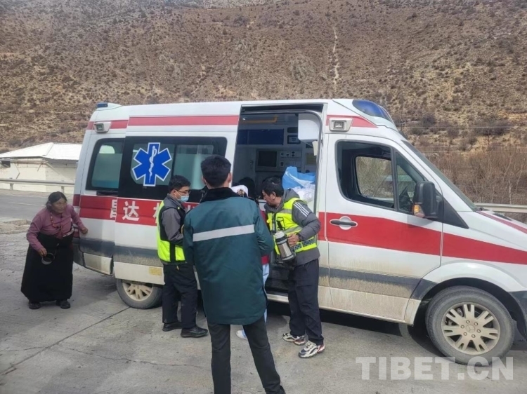 “沒事的,來,深呼吸。我們在去醫(yī)院的路上,昌都市人民醫(yī)院的急救車也正在趕過來,不用擔(dān)心。”隨車的陳祿彥醫(yī)生不停安慰著嘎吉,并不停觀察著她的情況。