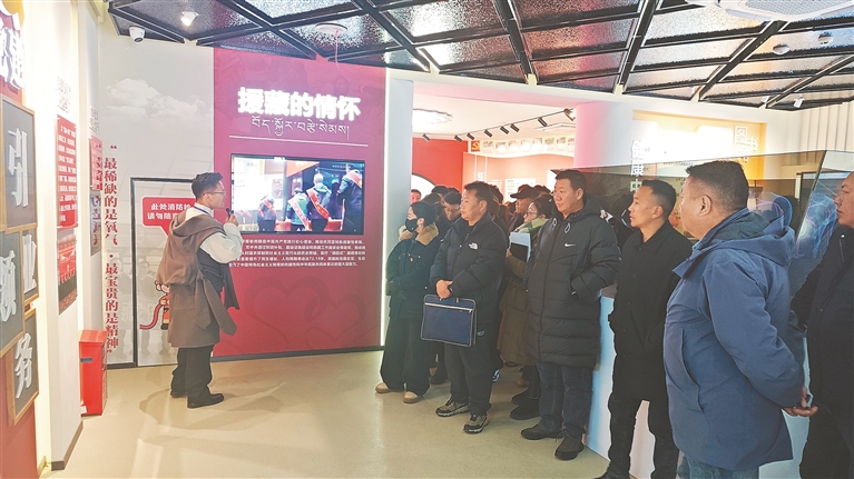 貫穿整個(gè)參觀流程的,是濃郁的紅色氛圍。展廳以“黨建引領(lǐng)健康事業(yè)”為主線,以清晰的時(shí)間軸呈現(xiàn)了黨的領(lǐng)導(dǎo)下衛(wèi)生健康事業(yè)的飛躍。同時(shí),陳列援藏工作紀(jì)實(shí)、先進(jìn)人物事跡等內(nèi)容,生動(dòng)詮釋了老西藏精神、“兩路”精神,展現(xiàn)了廣大醫(yī)務(wù)人員“敬佑生命、救死扶傷、甘于奉獻(xiàn)、大愛無疆”的職業(yè)追求。