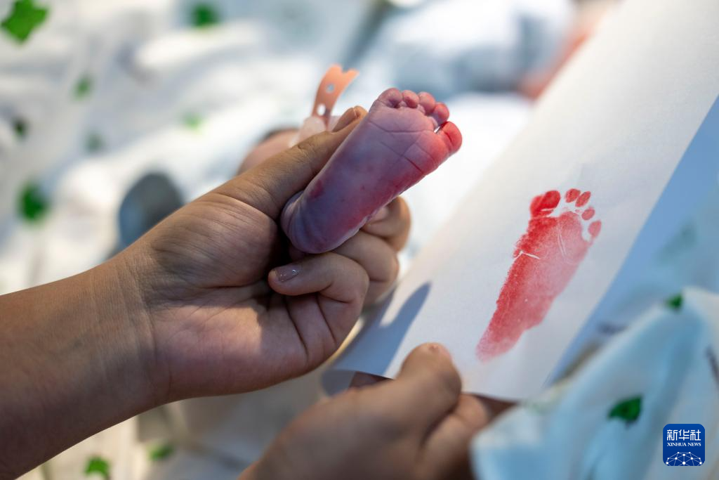 2026年1月1日,西藏自治區(qū)人民醫(yī)院婦產(chǎn)科助產(chǎn)醫(yī)生次拉為新生兒印腳印。新華社記者 旦增尼瑪曲珠 攝