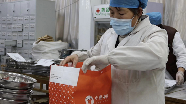 小鹿中醫(yī)調(diào)劑中心的藥師正在為患者抓藥