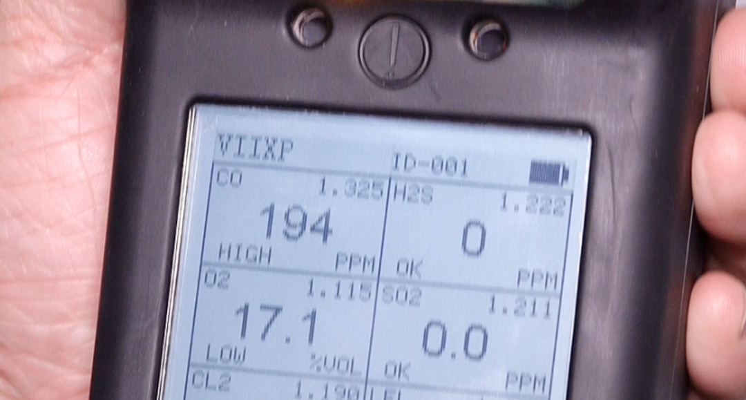 關(guān)閉門窗僅幾分鐘后,一氧化碳濃度快速漲至194ppm。