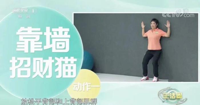 如果出現(xiàn)五點(diǎn)不能完全緊貼墻面的情況,說(shuō)明可能出現(xiàn)了含胸駝背的現(xiàn)象,這個(gè)時(shí)候我們可以通過(guò)“靠墻招財(cái)貓”的動(dòng)作,強(qiáng)化背肌力量,改善駝背體態(tài)。