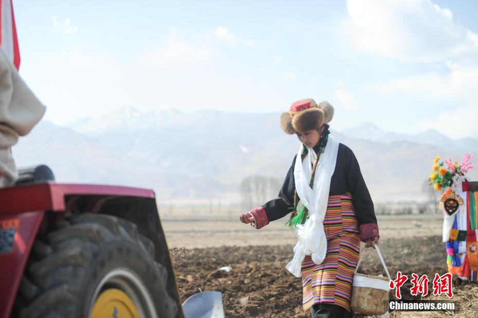 當(dāng)日是西藏農(nóng)民舉行一年一度春耕大典的日子。村民沿襲著傳承千年的春耕民俗,身著節(jié)日盛裝,手捧“切瑪”(五谷豐登斗),唱起祈愿歌,互敬青稞酒。當(dāng)鐵犁翻開土地,婦女將手中的種子撒下,祈求新的一年豐收。