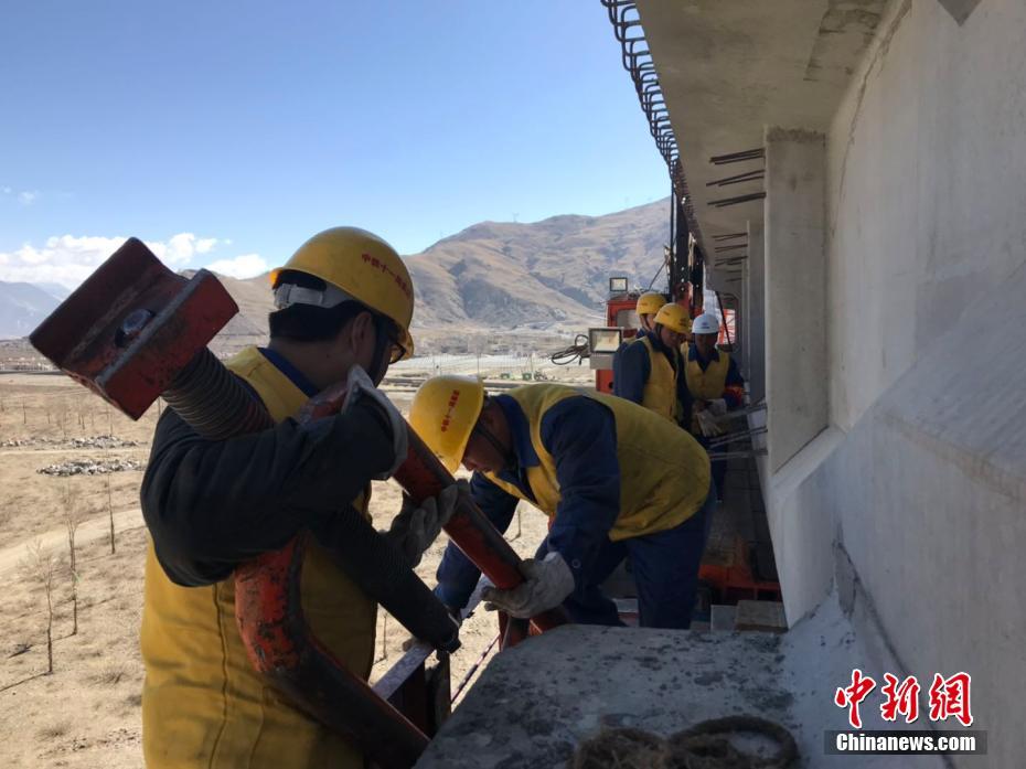 圖為山南拉林鐵路施工現(xiàn)場(chǎng)。中新社發(fā) 鐘欣 攝