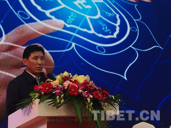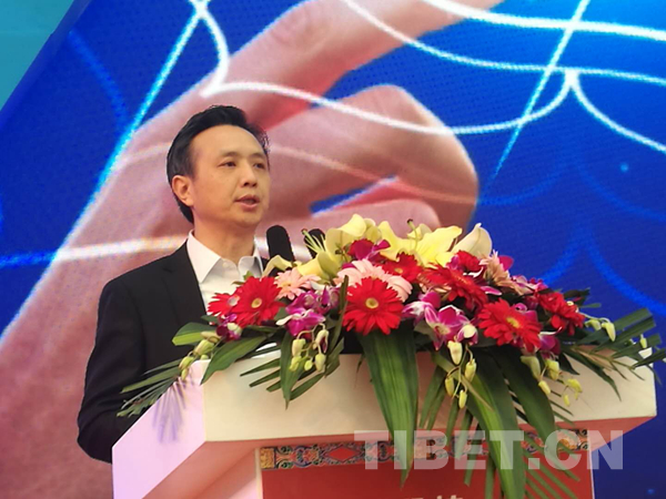 圖為拉薩市市長果果在招商推介會(huì)上講話