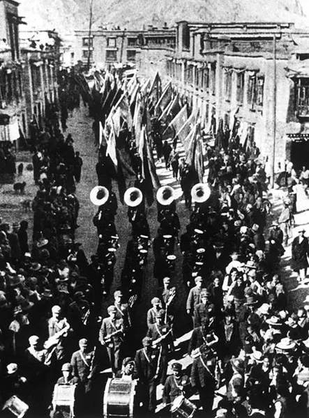中國(guó)人民解放軍第18軍入藏部隊(duì)入城式,進(jìn)入八廓街。興華 攝
