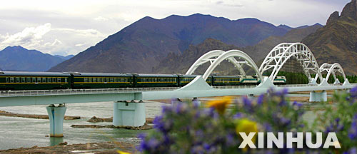 圖為一列客車駛經(jīng)青藏鐵路拉薩河特大橋。圖片來源:新華網(wǎng)