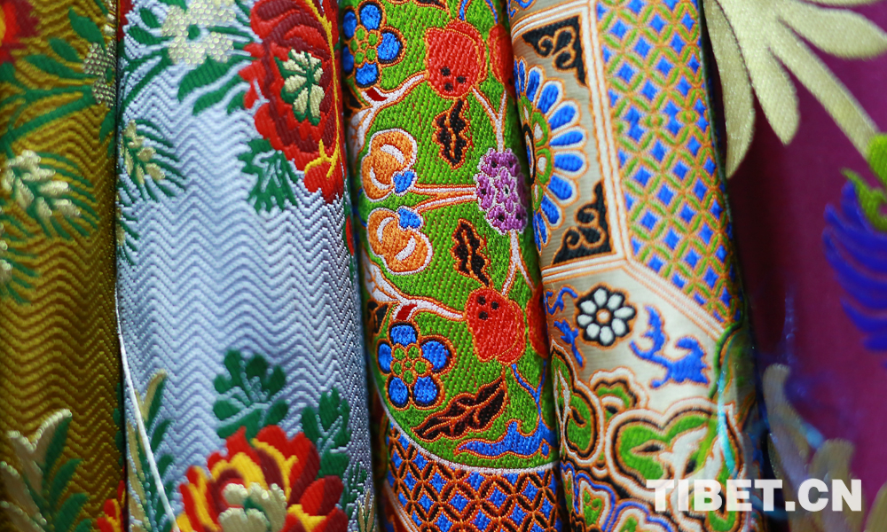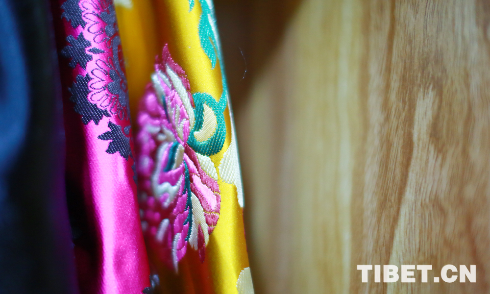 藏裝用料講究,既有羊毛氆氌,也有繡花綢緞。在面料主題上也是種類繁復(fù),多以植物鳥獸為圖案,五彩繽紛,細(xì)膩華麗。