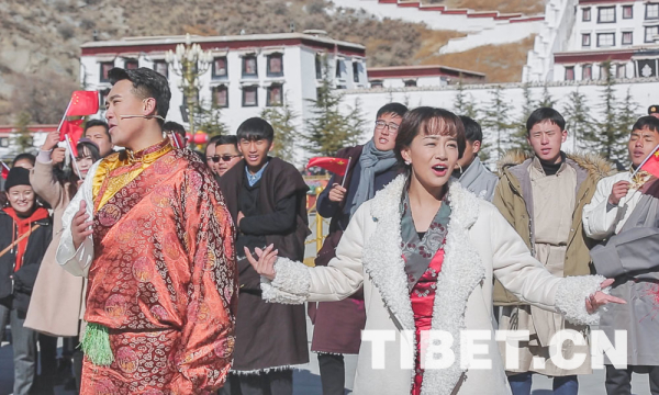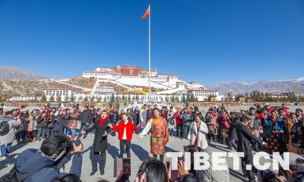 中國西藏網訊 2018年12月31日,年終歲末,西藏自治區(qū)拉薩市布達拉宮廣場上演了《我和我的祖國》快閃活動。來自西藏的高校青年學生和市民群眾向祖國深情告白,用快閃的方式慶祝新中國成立70周年。
