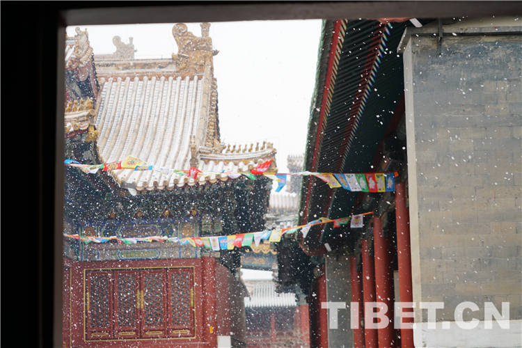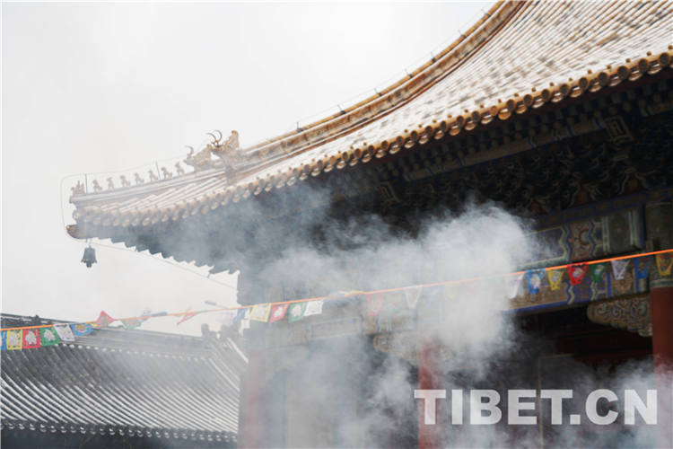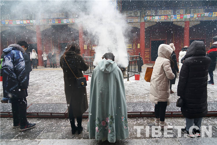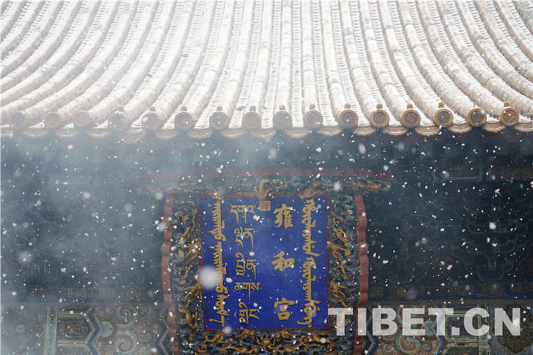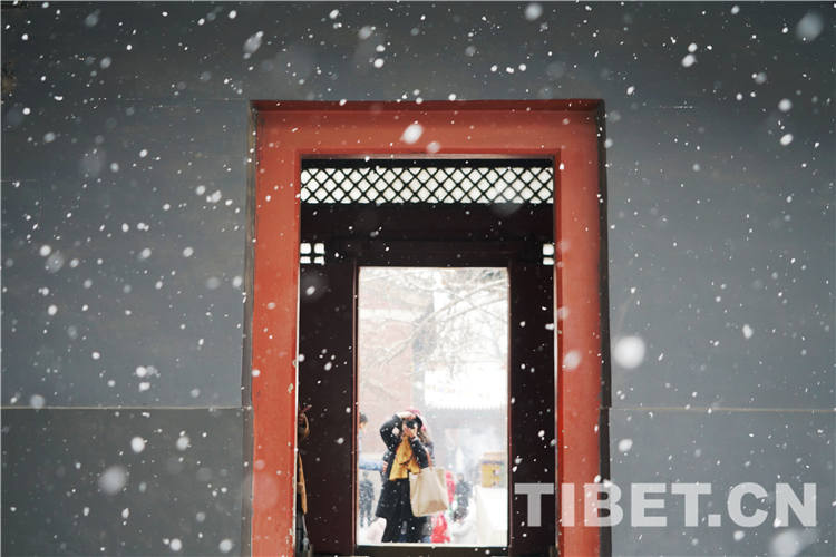 圖為2月14日,桑煙白雪,“顏值爆棚”的雍和宮。