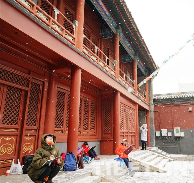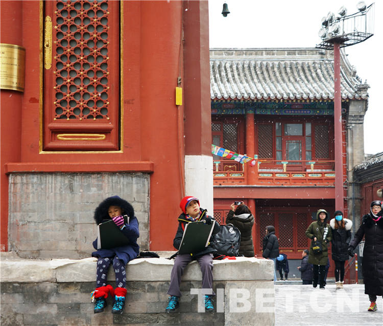 圖為2月14日,雍和宮內(nèi)寫生的孩子。