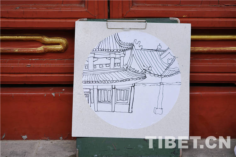 一群孩子坐在雍和宮內(nèi)的臺階上,稚嫩的線條一筆一畫勾勒出一幅幅生動而富有童趣魅力的圖畫。富有魅力的藏式元素加上他們獨特的視角,雍和宮的輪廓躍然紙上。(中國西藏網(wǎng) 記者/巫姍燕)