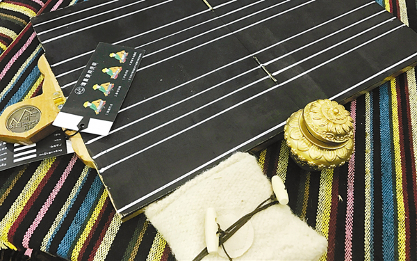“墻星”藏語意為寫字板。圖為折疊式“墻星”的展開樣式及其配套用具,圖片來源:西藏日報