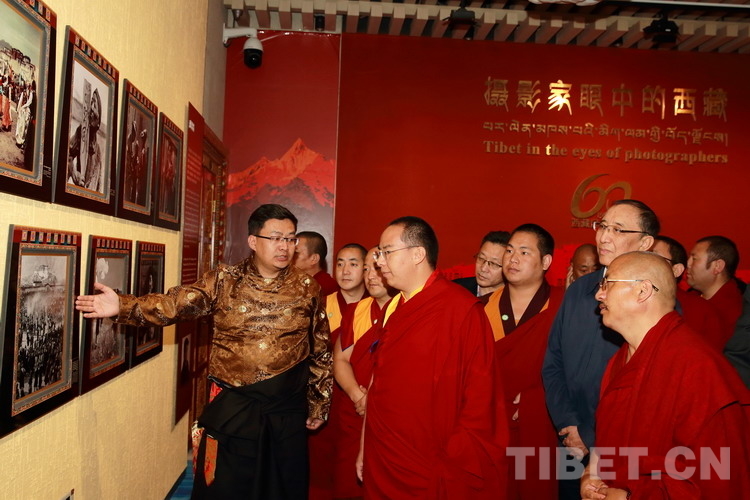圖為十一世班禪參觀(guān)“攝影家眼中的西藏”攝影展