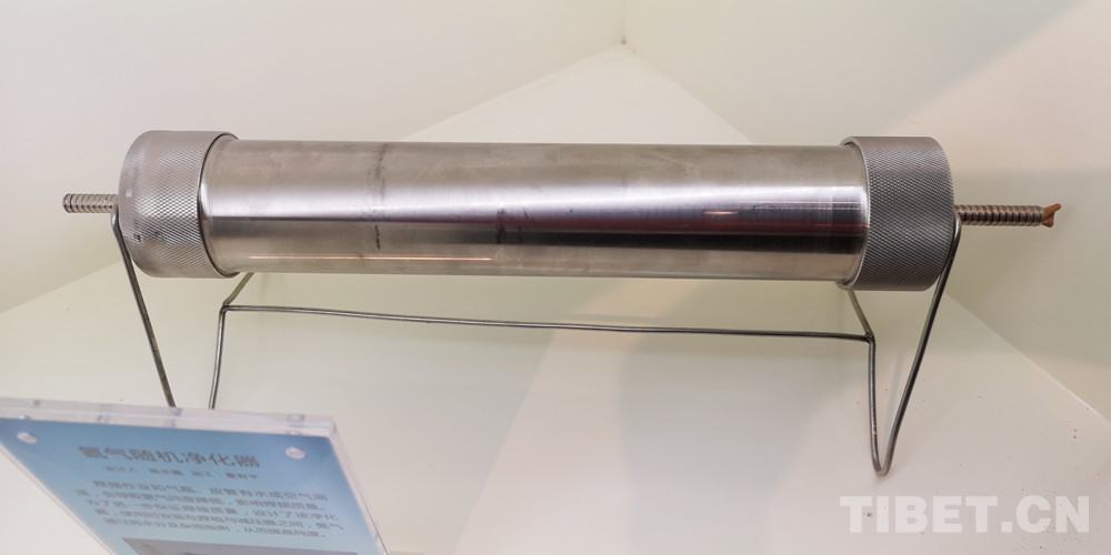 圖為楊永磊設(shè)計的氬氣隨機(jī)凈化器,使用時安裝在焊槍與減壓器之間,氬氣通過將水分及雜質(zhì)吸附,從而提高氬氣純度,保證焊接質(zhì)量 攝影:李元梅