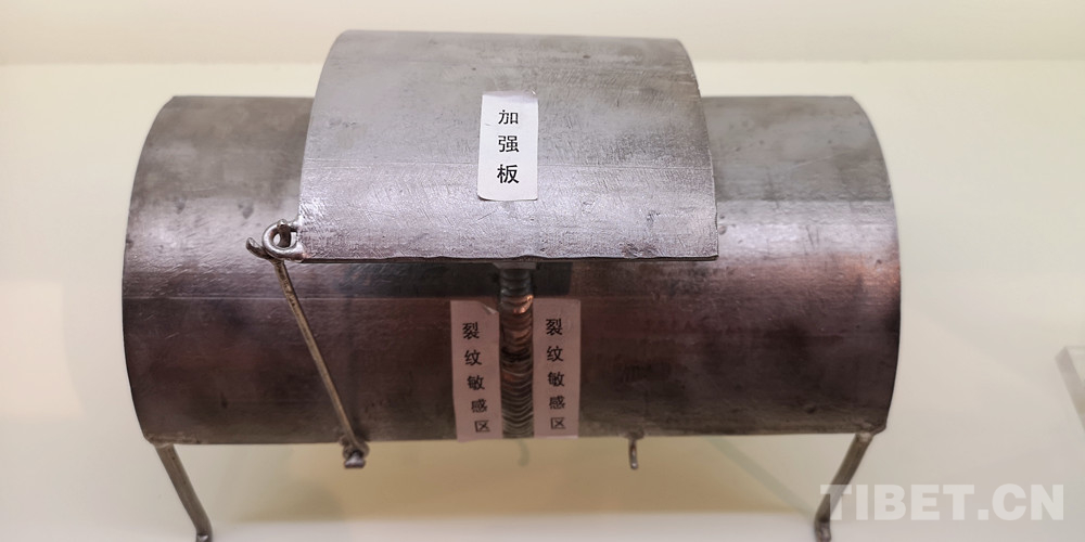 圖為楊永磊設(shè)計的管道裂紋帶壓處理工藝,利用焊接應(yīng)力將裂紋逐漸收嚴(yán),增加加強(qiáng)板,防止裂紋的蔓延,省時省力省費(fèi)用,且安全可靠 攝影:李元梅