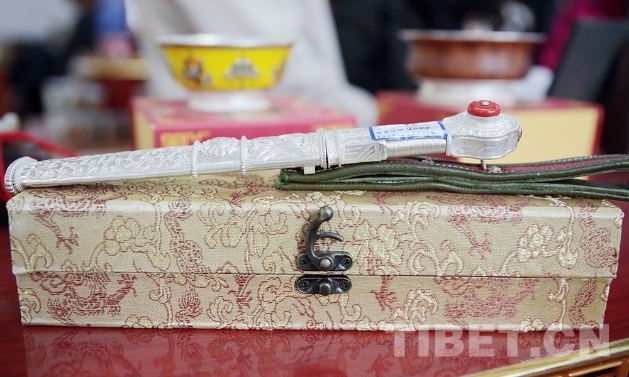 圖為展示的藏刀 攝影:楊月云(中國西藏網(wǎng) 記者/楊月云)