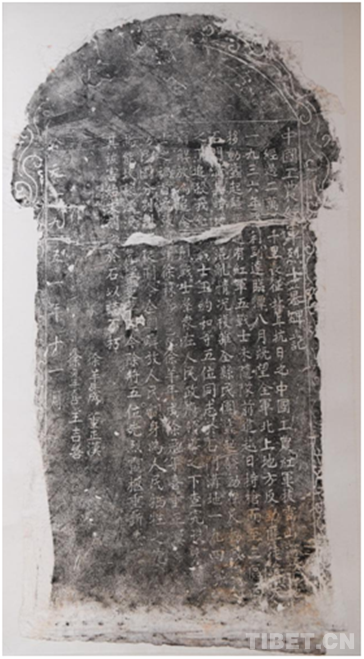 展覽中還有一幅與紅軍過雪域有關(guān)的展品——《中國工農(nóng)紅軍烈士墓碑》(1951年)拓片。碑文記錄了這樣一段歷史:1936年,中國工農(nóng)紅軍長(zhǎng)征北上抗日到達(dá)臨潭(今甘肅省甘南藏族自治州臨潭縣)時(shí),紅軍戰(zhàn)士王約如等5位戰(zhàn)士在石門溝犧牲。1949年,這5位戰(zhàn)士被追念為先烈戰(zhàn)士,人民政府查究?jī)词?,重新安葬了英烈?zhàn)士靈柩。