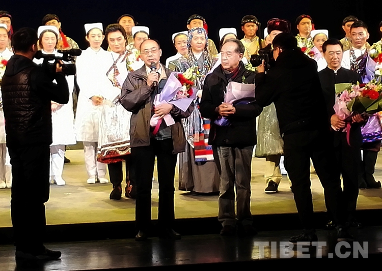 由唐召明等人策劃的評劇《藏地彩虹》在全國地方戲演出中心演出,深受好評。這是唐召明在演出后談創(chuàng)作感受。該劇援藏醫(yī)生方丹的原型是唐召明長期報道的、被藏族稱為“活菩薩”的北京安貞醫(yī)院小兒心臟病專家顧虹。(唐召明提供,2017年12月10日攝)