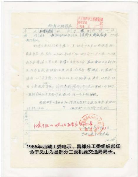 在1956年全國轟轟烈烈的社會主義改造高潮中,西藏迎來了一個劃時代的日子,4月22日西藏自治區(qū)籌備委員會成立,領(lǐng)導人講話都提到了民主改革問題。西藏工委在執(zhí)行中央“慎重穩(wěn)進”的過程中,準備在昌都、日喀則實行民主改革試點。因之接踵而來的是擴大機構(gòu)增加人員,進行大力宣傳和試點。父親負責的昌都分工委機要交通站也在擴充之列,由機要交通站擴充為機要交通局,直屬昌都分工委領(lǐng)導。在西藏工委電示下,昌都分工委組織部下文任命父親為機要交通局局長,周孝山為副局長,從1956年10月16日走馬上任。母親非常清楚地記著機要交通局除了上面提到的幾位,還有陶躍忠、王佳廉、唐俊生、韓進先、鄭海超等近20多位從事機要交通的同志。