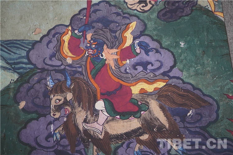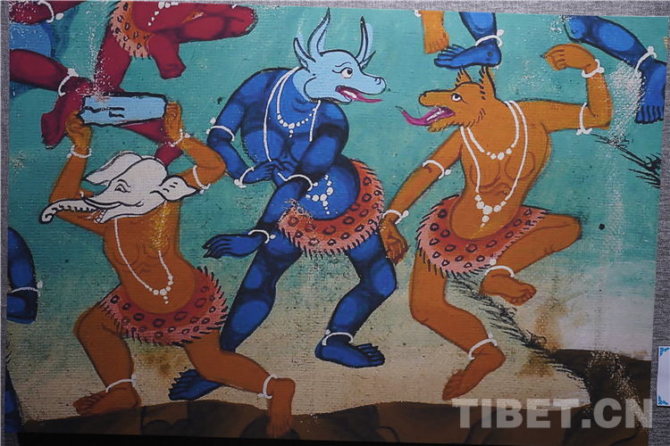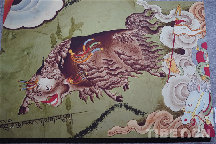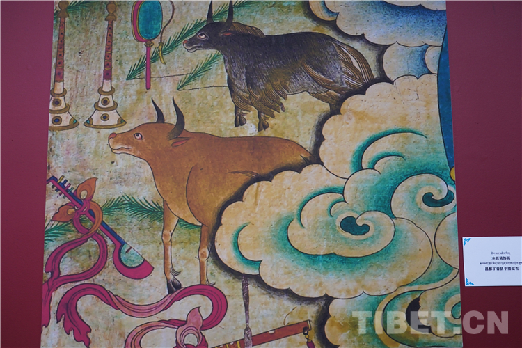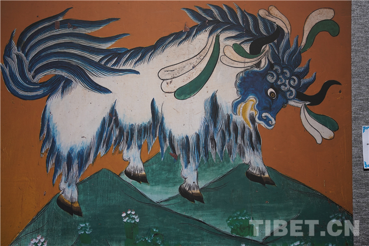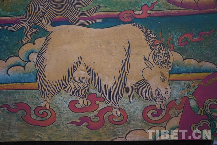 牦牛走進(jìn)了藏族人民的生活,在幾千年的相處中,牦牛升華成任何一種事物和元素,完美融入了壁畫(huà)、唐卡、建筑等多種藝術(shù)創(chuàng)作中。