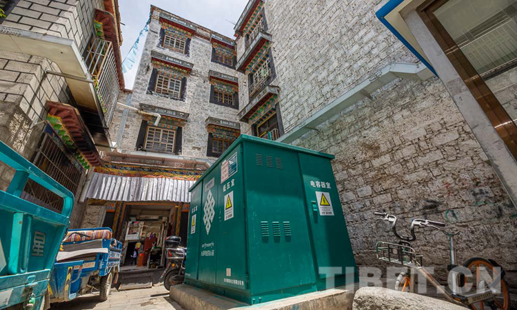圖為旺堆生活的大院內(nèi)“一戶一表”的電表箱 攝影:趙耀