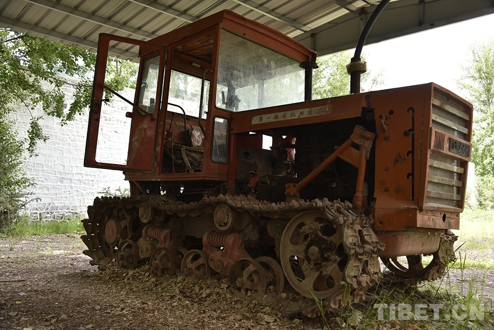 圖為林周農(nóng)場(chǎng)場(chǎng)部舊址里展示的拖拉機(jī) 攝影:王媛媛
