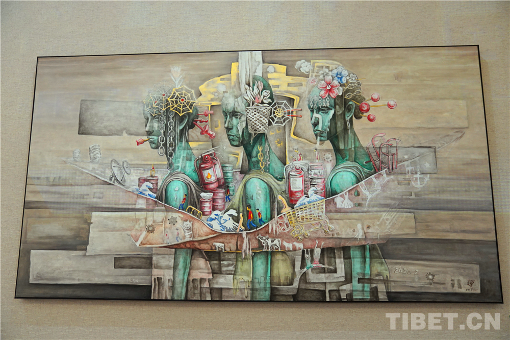 藝術家們用畫筆描繪過往與未來,用色彩展現(xiàn)不同地域不同文化對西藏當代藝術的影響,用線條表達對自然的敬畏,對人生哲理的思索與解讀。作品涵蓋了西藏本土自然、文化、藝術、日常生活習俗等原汁原味的素材,創(chuàng)造性地展現(xiàn)了奇思妙想的藝術語境,豐富多彩的藝術風格,詮釋出他們對這個世界的摯愛真情。