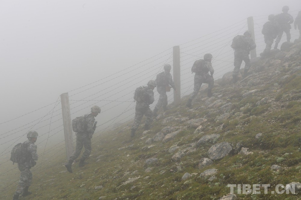 日前,在連隊指導員高軍杰的帶領(lǐng)下,每名官兵負重30斤,再一次踏上了巡邏路。這次巡邏的任務(wù)是為3個界樁描紅,并在途中檢查沿線的鐵絲網(wǎng),官兵們先抵達20號界樁,然后越過河谷地帶,到達19號界樁,再到海拔5300米的18號界樁后返回。此次巡邏任務(wù),采取車行巡邏和徒步巡邏相結(jié)合的方式進行。